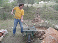 Das Rohr wird säuberlich hinter der Mauer eingegraben, die