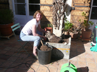 das Neubepflanzen dieser zwei Säulentröge.