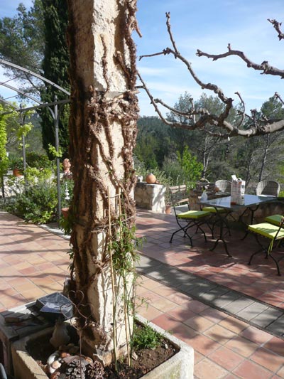 Die zwei Säulen auf der Terrasse waren derart vom Efeu